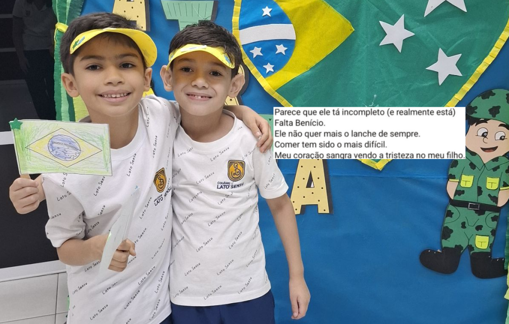 A comoção pela morte do menino Benício Xavier Freitas, de 6 anos, vítima de overdose por adrenalina no Hospital Santa Júlia, em Manaus, ainda está sendo dolorida e sentida por todos que o cercavam. O luto se estende até a sala de aula no colégio Lato Sensu, onde seu melhor amigo lida com o vazio deixado pela partida inesperada. O relato é de Thays Carioca, mãe de Pedro, que descreve um filho profundamente abalado.