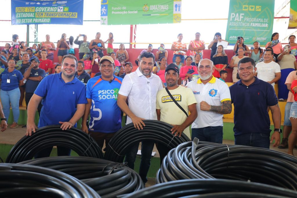 Em Alvarães (530 quilômetros), além de acompanhar a distribuição de implementos e benefícios sociais, o presidente da Aleam também esteve na Comunidade São Raimundo do Jaraguá, onde participou da assinatura da licença para o manejo de jacaré.